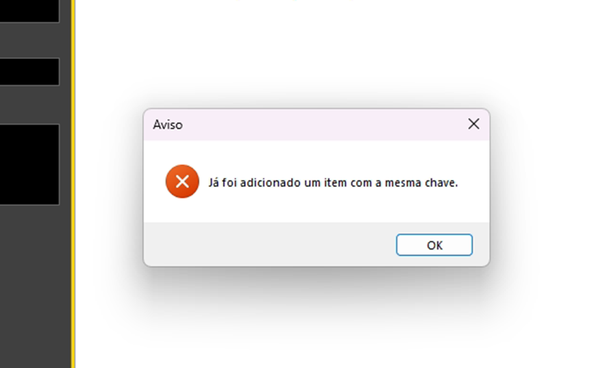 Tags: chave, ja foi adicionado um item com a mesma chave, pdv, mesma chave