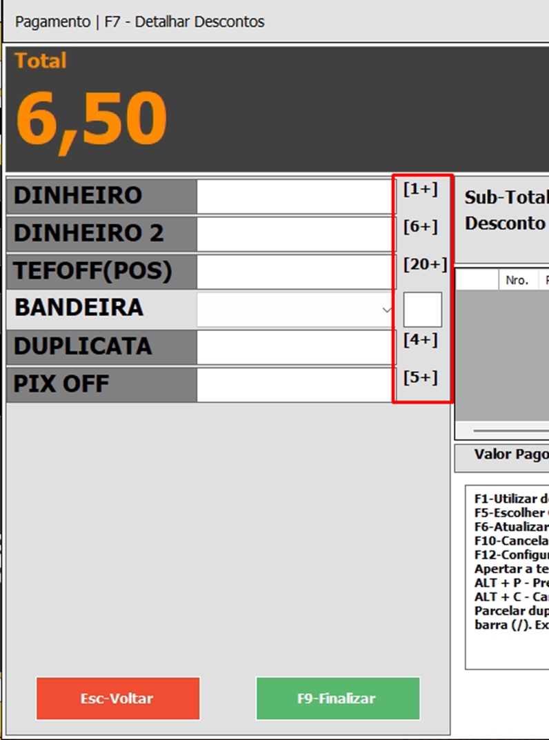 Dica: Abaixo esta ilustrado onde se localiza no caixa a visutalização da numeração do atalho para cada forma de pagamento