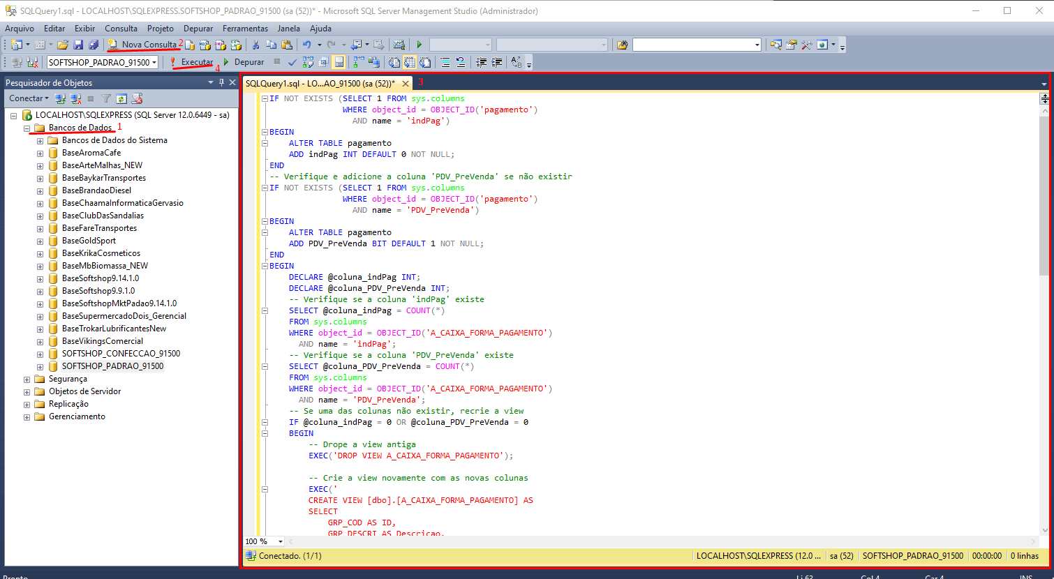 - Selecione o banco do cliente, aperte em "Nova Consulta" e na janela aberta cole o script a