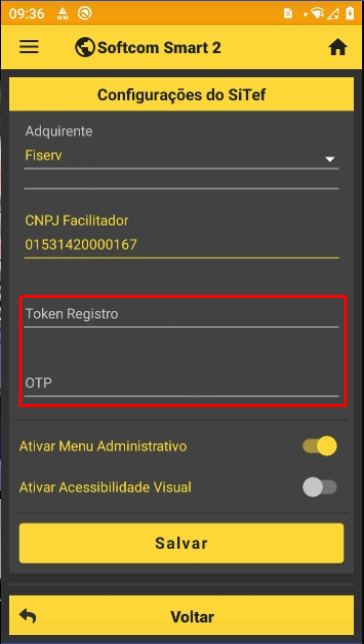 Smart > Configuração: Como habilitar TEF no dispositivo Fiserv (Bin, Sicredi, Azulzinha Caixa)