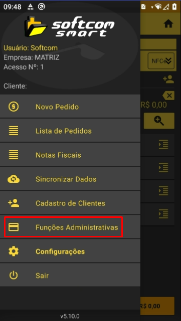 - Apos Salvar, voltar pra o menu o Smart e clicar na nova opcao "Funcoes Administrativas".