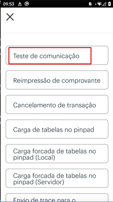 - Em seguida será aberto a interface do m-Sitef Novo e nessa interface deverá ser selecionado a opcao teste de conexao.