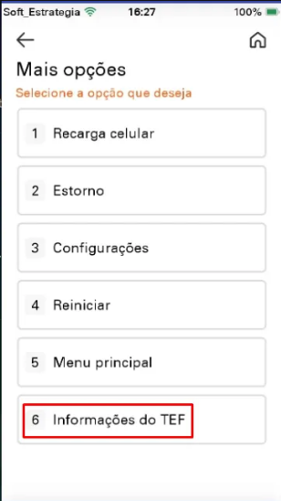 - Depois de instalar as aplicações, iremos realizar o cadastro do TEF no dispositivo. Acessando: Mais opções >6 - Informações do TEF>Cadastro TEF> em seguida preencher o CNPJ (com o CNPJ do cliente).