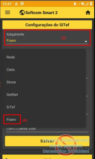 - Ao acessar a tela de TEF, ira encontrar a opcao de selecionar a adquirente. Onde nesse primeiro momento iremos selecionar a opcao Fiserv.