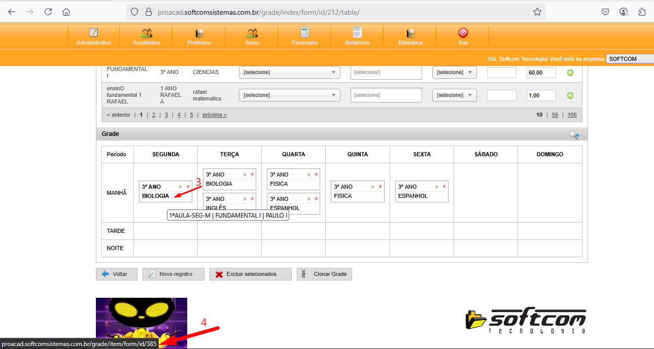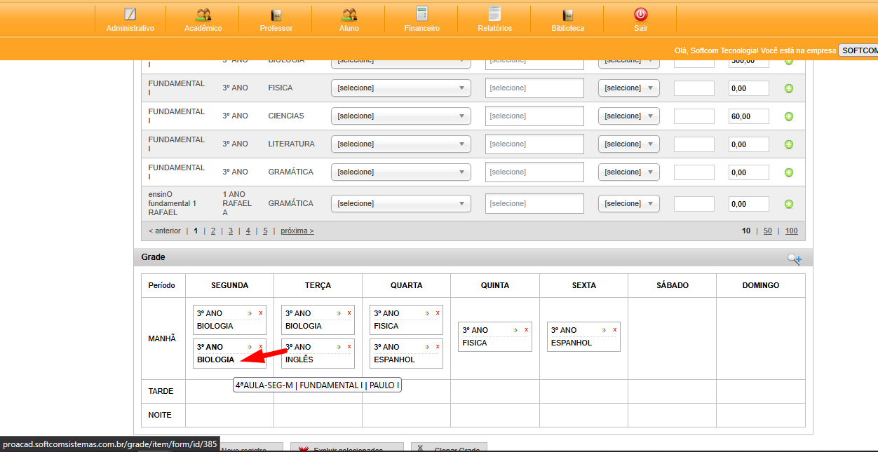 PROACAD> Grade: Cliente não acrescentou um horário na grade, e lançou dados, como ajustar?