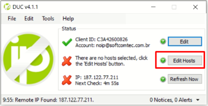 Cliente não tem endereço No-ip preenchido na aba Remoto Acesso;