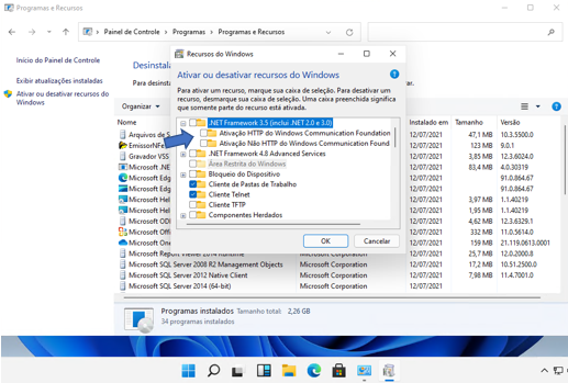 Painel de Controle > Programas > > Desinstalar um programa > Ativar ou desativar recursos do Windows: