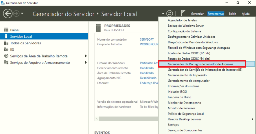 1 - Acessar Gerenciador de recursos de servidor de arquivos