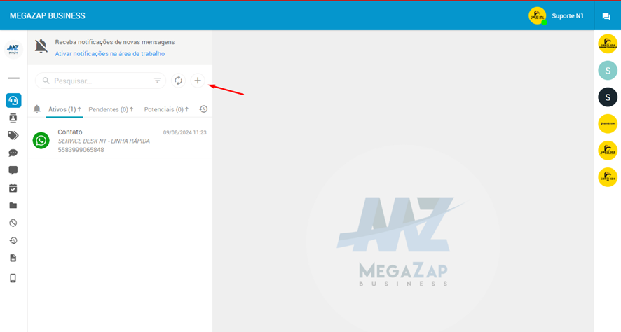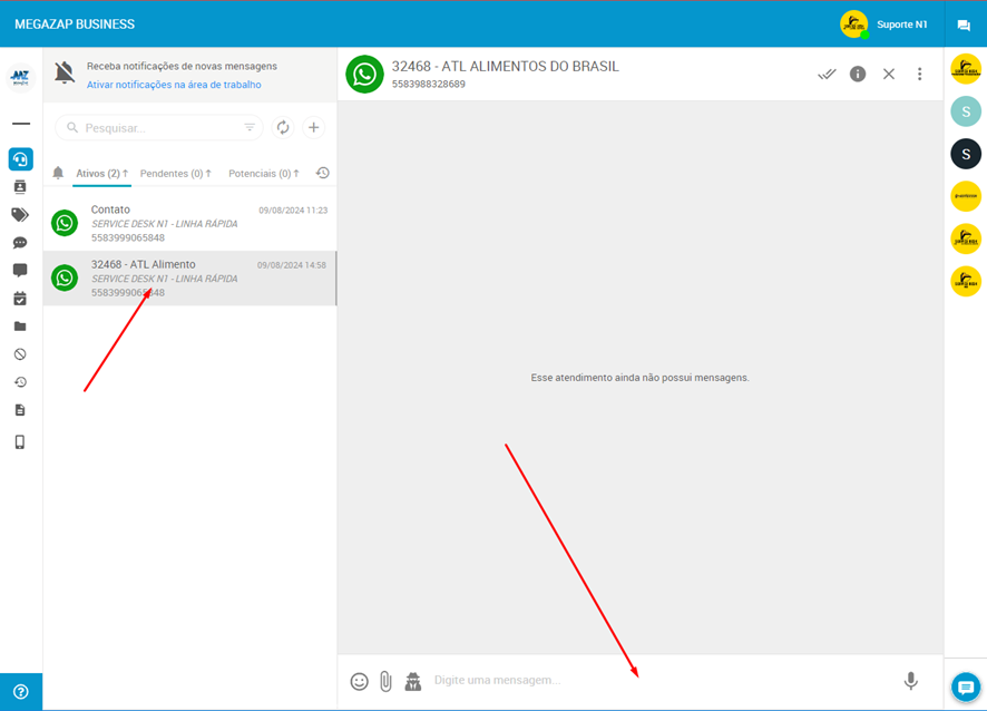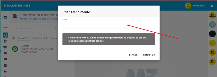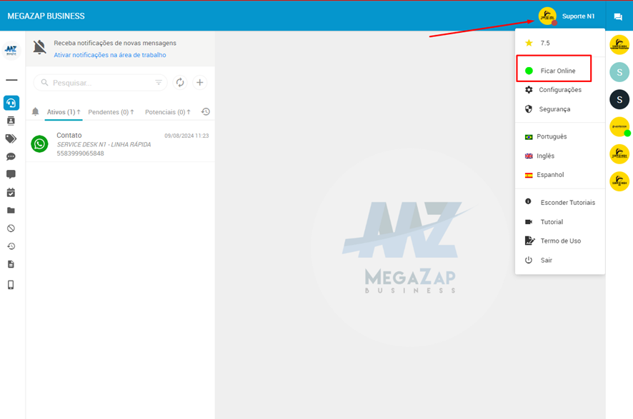 Para conseguir realizar o envio de mensagens, será necessário deixar o atendente com o status “online”.