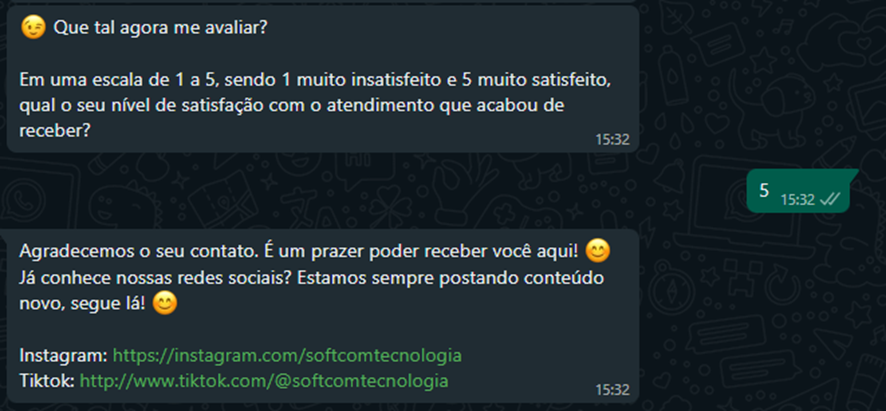 Ao encerrar o chat,será enviado ao cliente uma Pesquisa de Satisfação pelo atendimento que foi realizado.