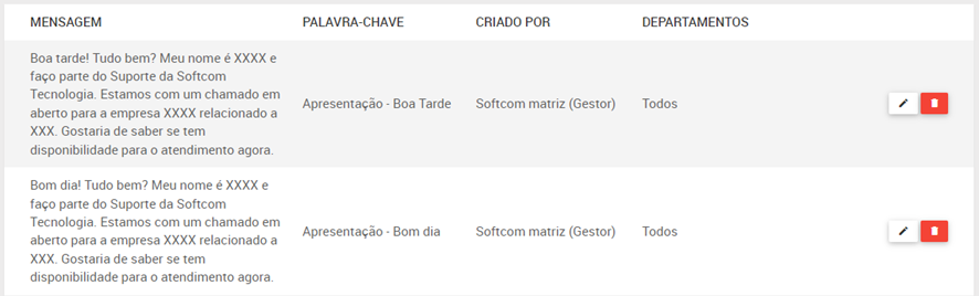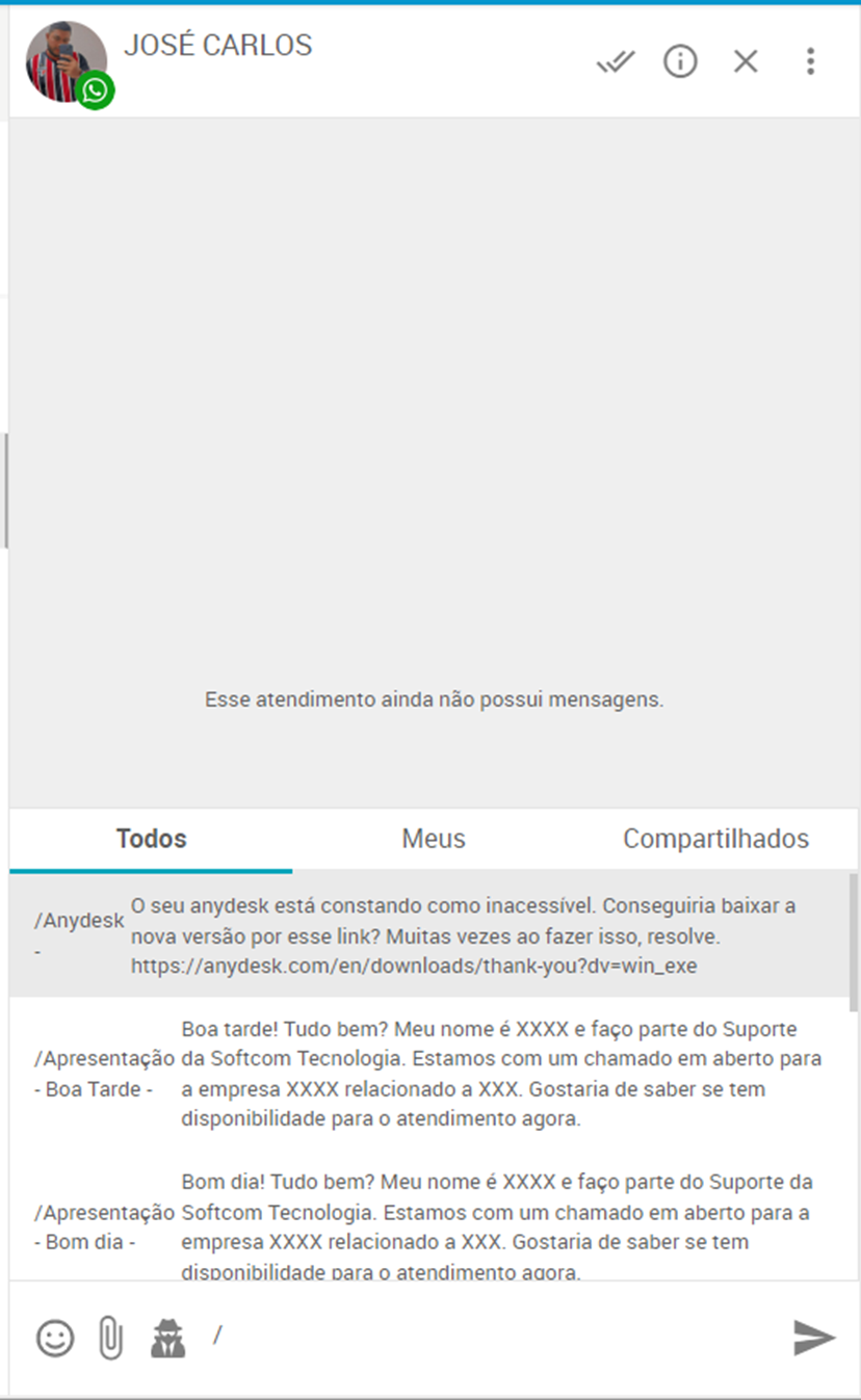 Sempre deverá ser realizado o contato com o cliente usando a resposta padrão inicial de atendimento: