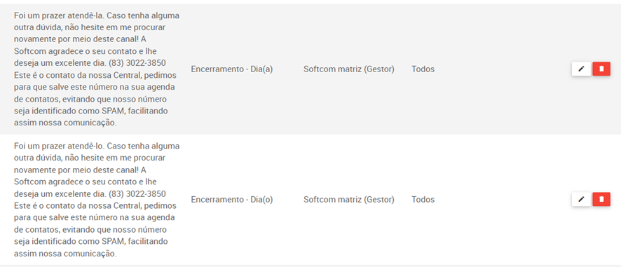 è Ao final do atendimento, deverá sempre ser enviado a resposta padrão de encerramento do atendimento: