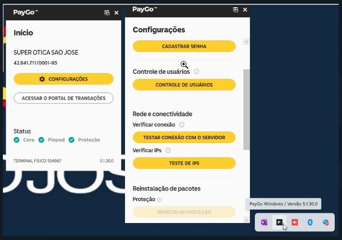 1 - Na bandeja do Windows ao lado do relógio, abrir a tela do Terminal Paygo e clica em "Configurações".