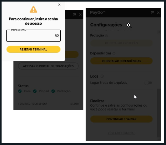 2 - Após reiniciar se permanece o erro, realizar o "RESET" do Terminal, descer a tela do Terminal até o final e clicar na opção "Resetar Terminal"