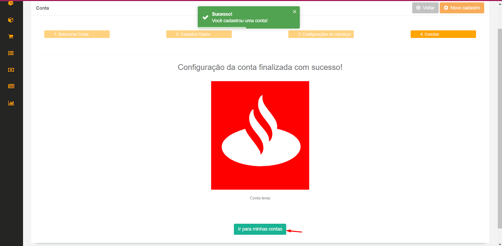 2 - Na listagem de contas clicar em Novo Cadastro