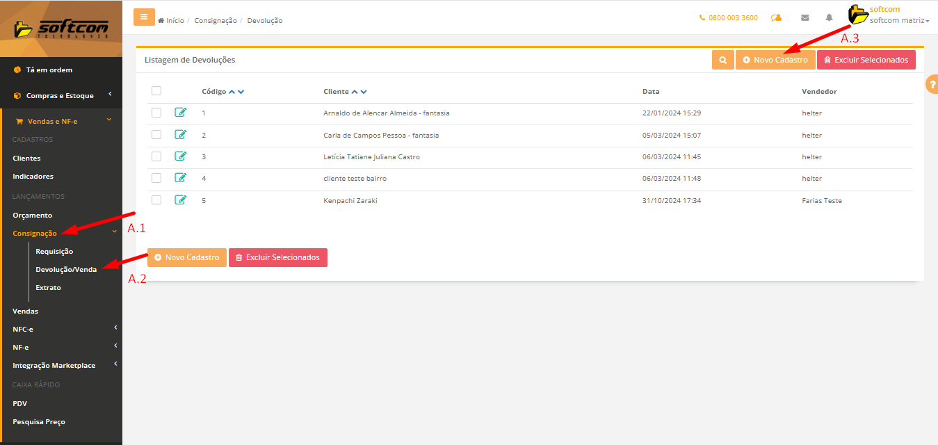 Softcomshop: Consignação - Como realizar uma Devolução/Venda?