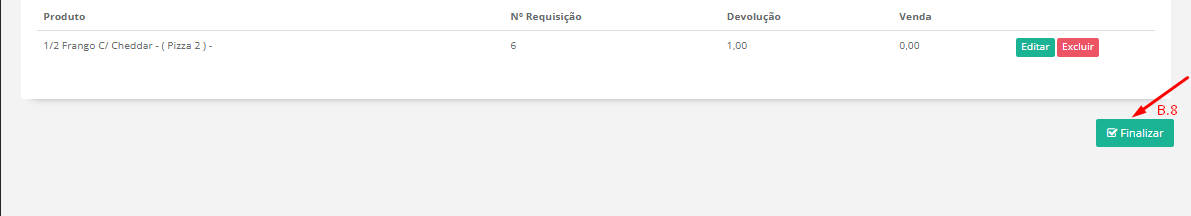 - Após realizar o lançamento de todos os itens que desejar, basta clicar em Finalizar B .8 .