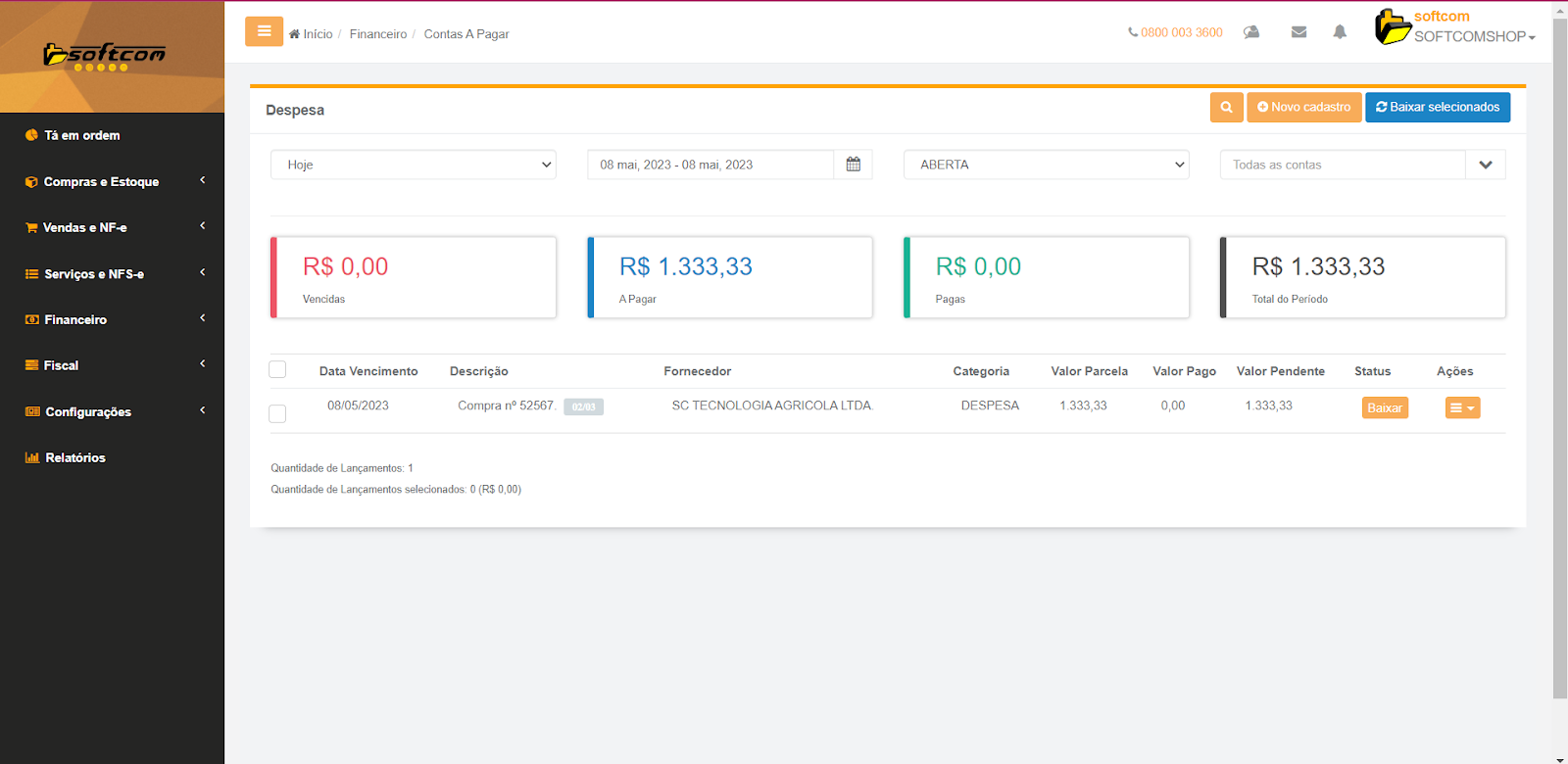 Tags: softcomshop, financeiro, contas a pagar, despesas