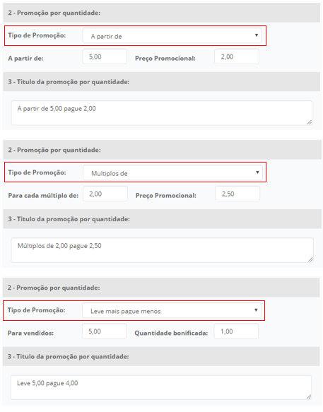 Múltiplos de - Para cada 2 itens vendidos o valor promocional cobrado será R$ 2,50 cada.