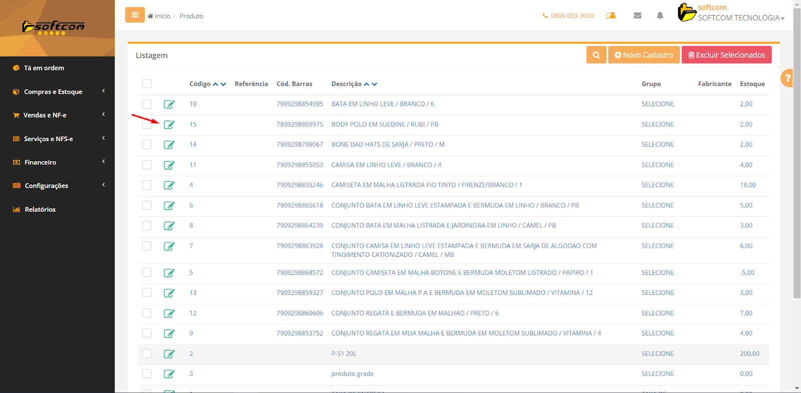 1-Após ter realizado login, navegar no menu lateral a opção Compras e Estoque
