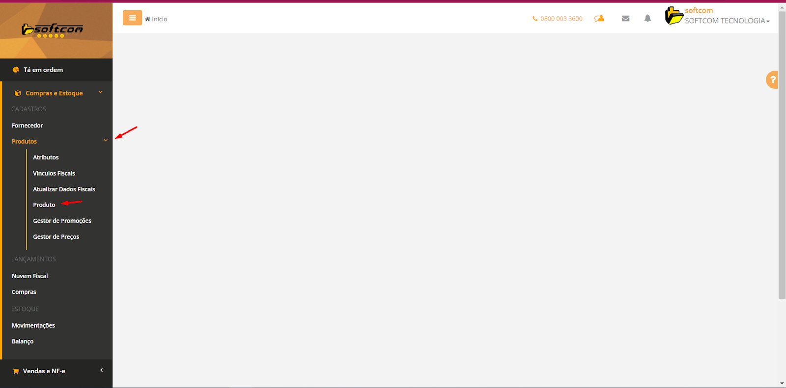 1-Após ter realizado login, navegar no menu lateral a opção Compras e Estoque
