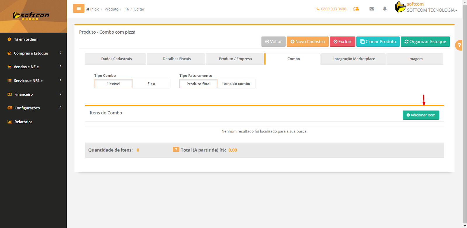 Obs: A opção de adicionar uma ‘pizza’ no combo está disponível apenas no módulo restaurante.