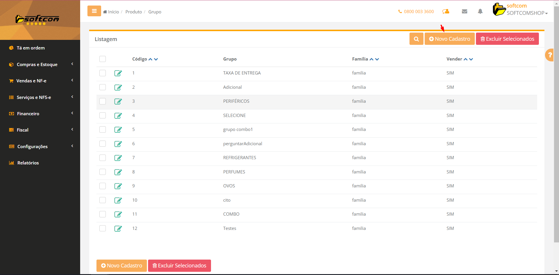 3- Na tela de listagem de grupos, clicar em Novo Cadastro