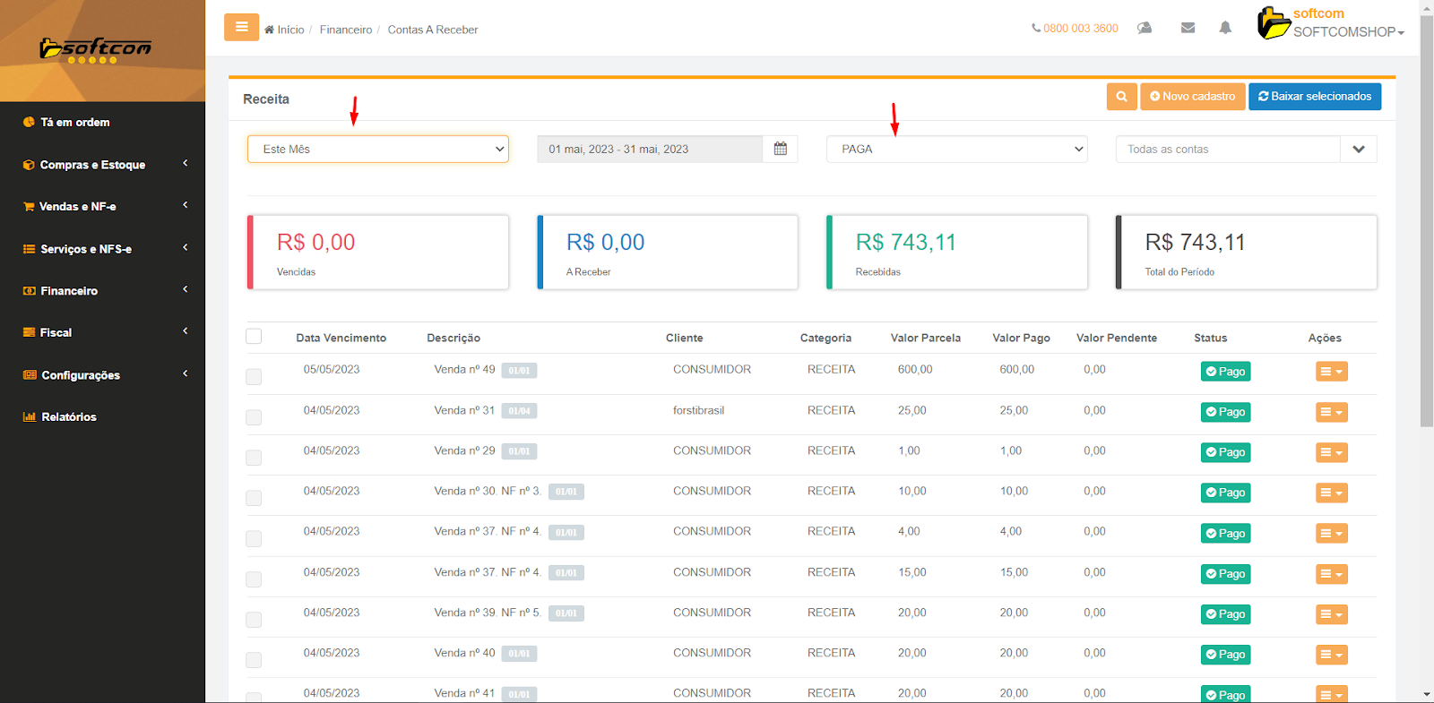 Tags: softcomshop, financeiro, contas a receber, contas a pagar, receita, despesas