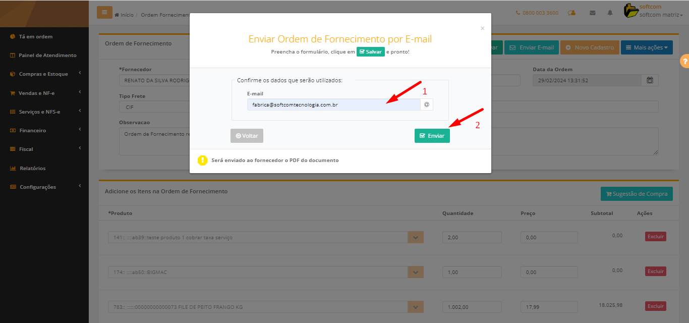 Softcomshop>Ordem de Fornecimento: Como gerar uma ordem de fornecimento?