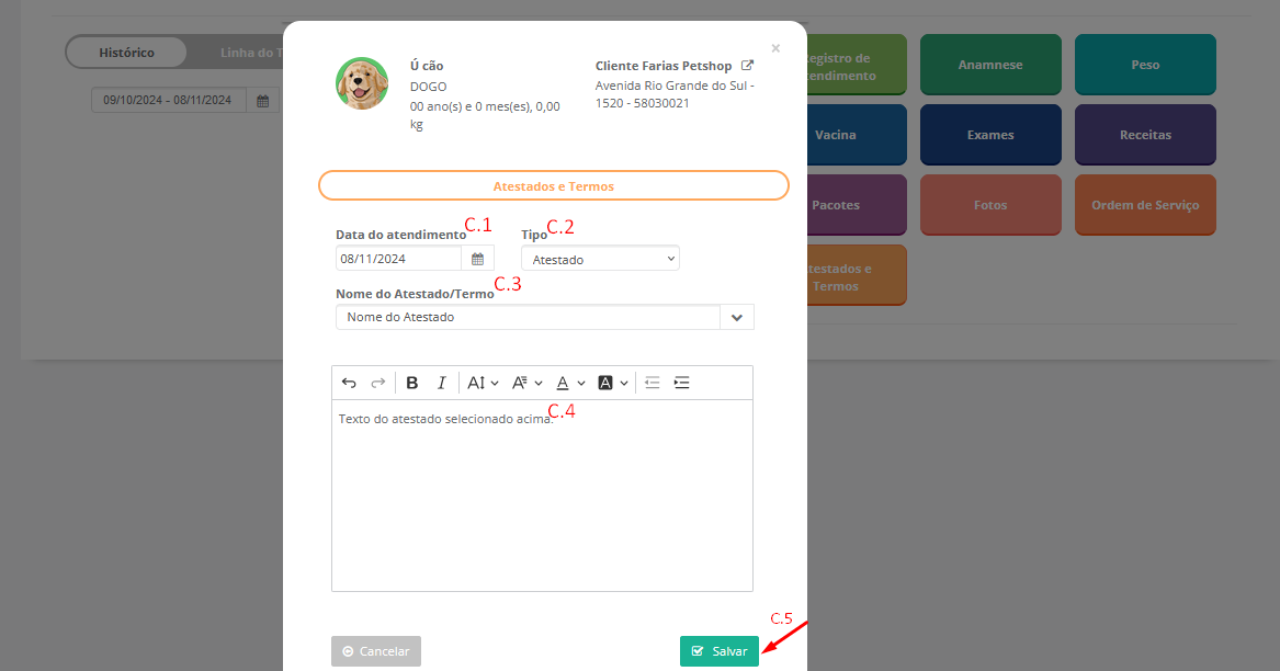 Softcomshop>Petshop: Como utilizar os Atestados e Termos?
