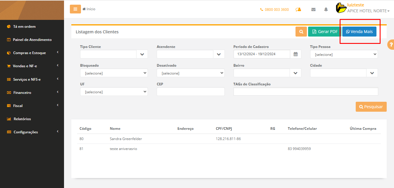 3 - Pode ser utilizado os filtros dos Relatórios para montar a massa de clientes que serão enviada as mensagens