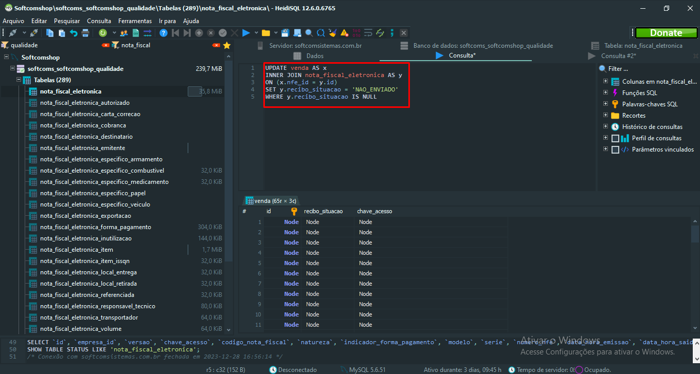 2.3. Executar a consulta UPDATE, atualizando o status de todas as vendas listadas anteriormente no SELECT para " NAO_RECEBIDO "