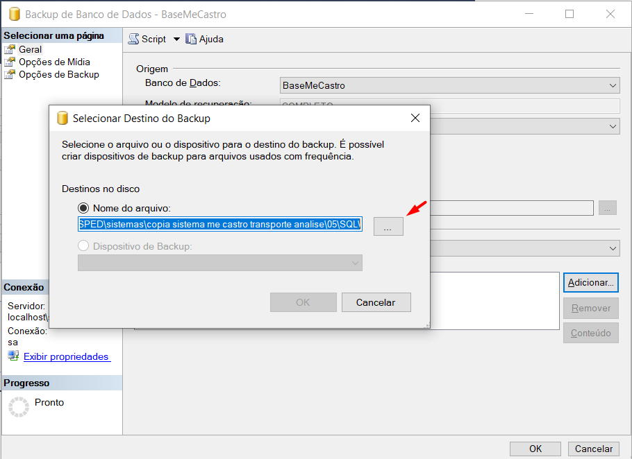 5-Na tela Selecionar Destino do Backup clicar no botão "..."