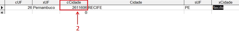 Nesse exemplo temos o código município 2611606 onde 26 representa o codigo da UF,neste caso Pernambuco e o 11606 o código da cidade, nesse exemplo Recife os dois juntos formam o código município, em nosso banco de dados o campo cCidade.