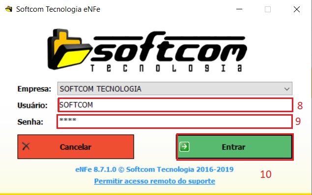 5 - Entre com seu usuário e senha (8) ,(9) e aperte (10) ENTRAR :