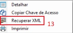 8 - Ira abrir as opções selecione a opção Recuperar XML (13):