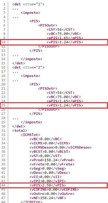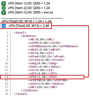 Quando for emitida uma NF-e com o Total do PIS da NF-e (Campo: total / ICMSTot / vPIS - ID: W13) diferente do somatório do Valor do PIS (vPIS - ID: Q09) de cada item, será retornado a rejeição "602 - Total do PIS difere do somatório dos itens sujeitos ao ICMS".