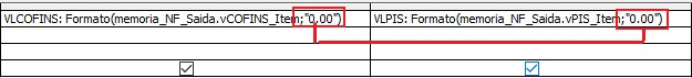 VLCOFINS: Formato([vCOFINS_Item];"0.00") e VLPIS: Formato([vPIS_Item];"0.00")