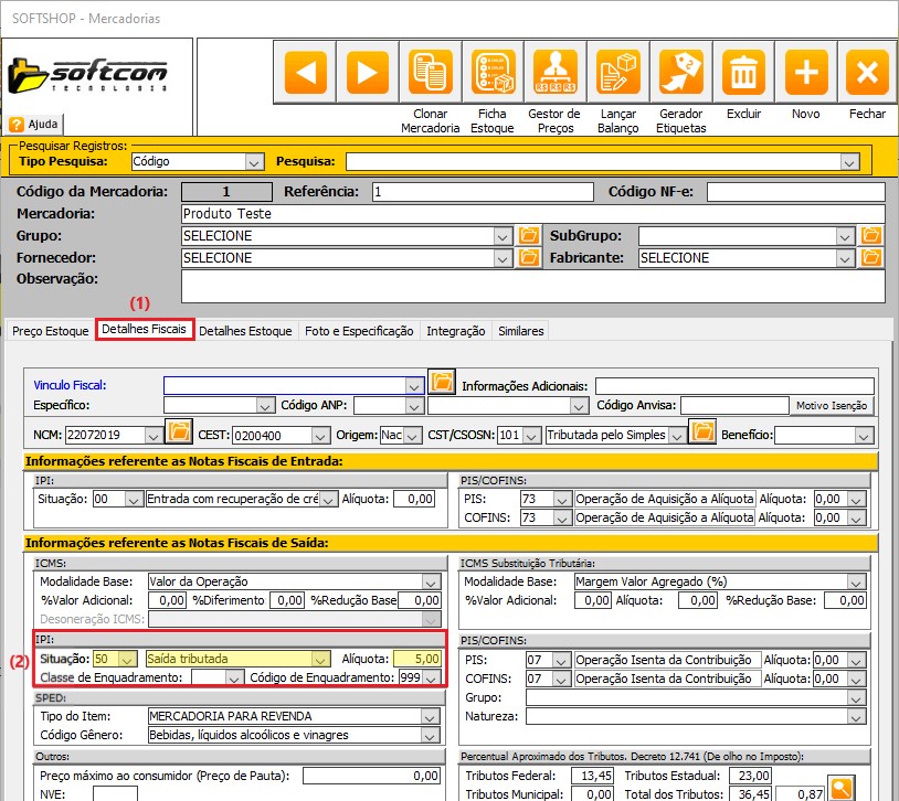 Softshop > NFe: Não aparece o valor do IPI nem a aliquiota de IPI na nota fiscal.