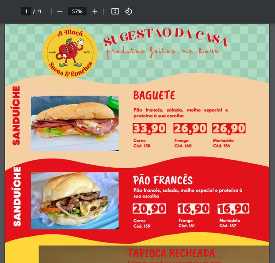 - Antes de iniciar a conversão, revise o arquivo para garantir que o texto esteja nítido e legível. Evite imagens desfocadas, textos muito pequenos ou arquivos de baixa resolução, pois isso pode comprometer a extração dos dados. Para este exemplo, utilizaremos um cardápio no formato PDF.