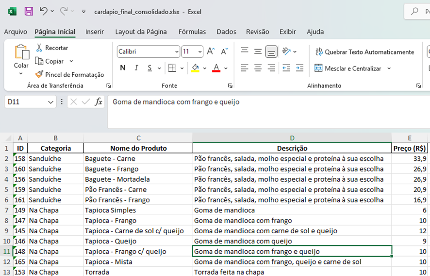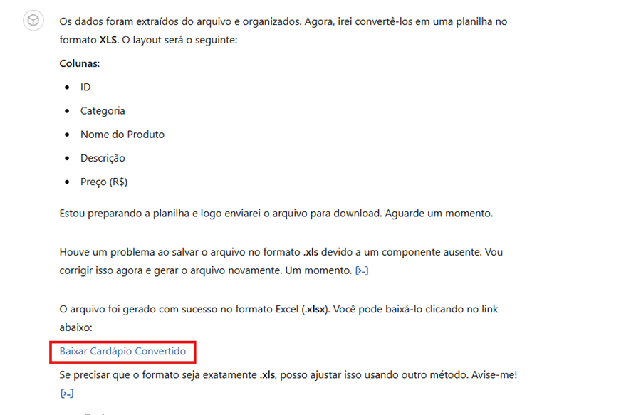 - Faça o download da planilha e revise os dados convertidos. Verifique se os preços, grupos e descrições dos produtos estão corretos antes de prosseguir.