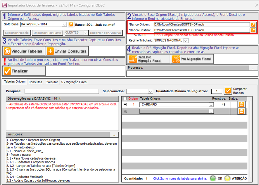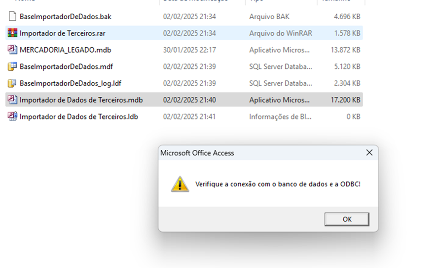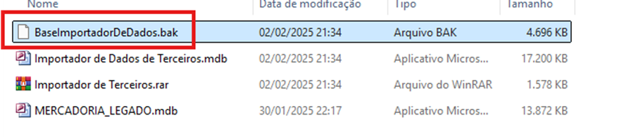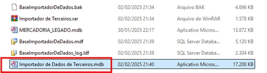 - Execute o arquivo "Importador de Dados de Terceiros.mdb" para iniciar o processo de importação.