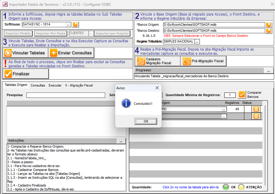 - Clique no botão "Vincular Tabelas" e aguarde até que o processo seja concluído.