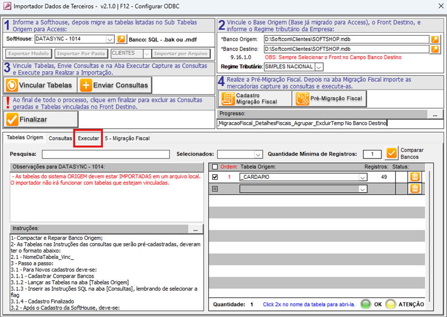 - Com as consultas enviadas, clique na aba denominada "Executar" para dar continuidade ao processo.