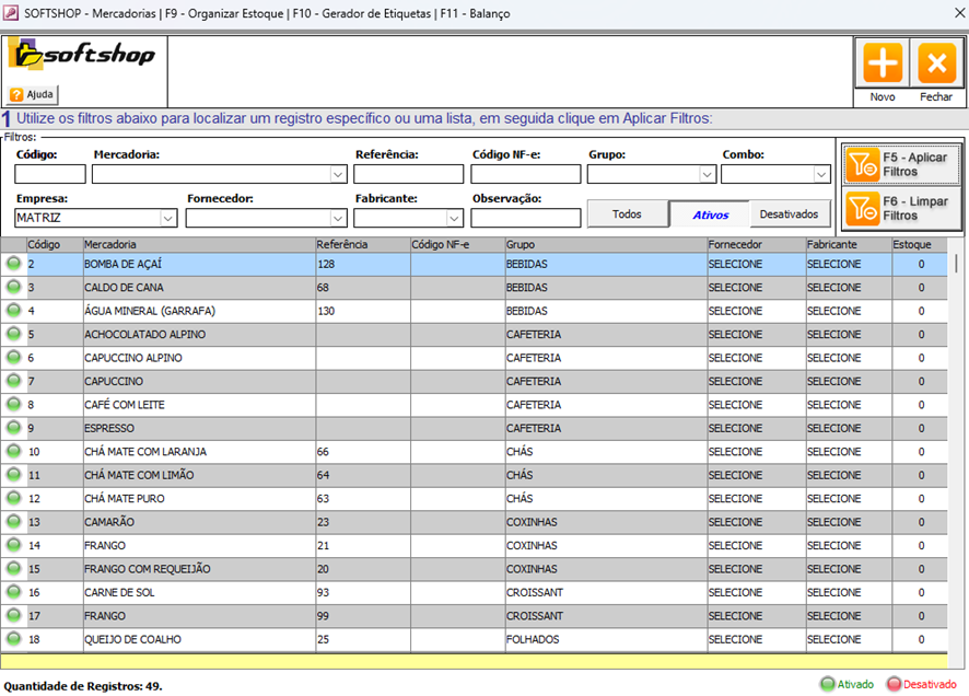 Software: SOFTSHOP | Grupo: PARAMETRIZACAO