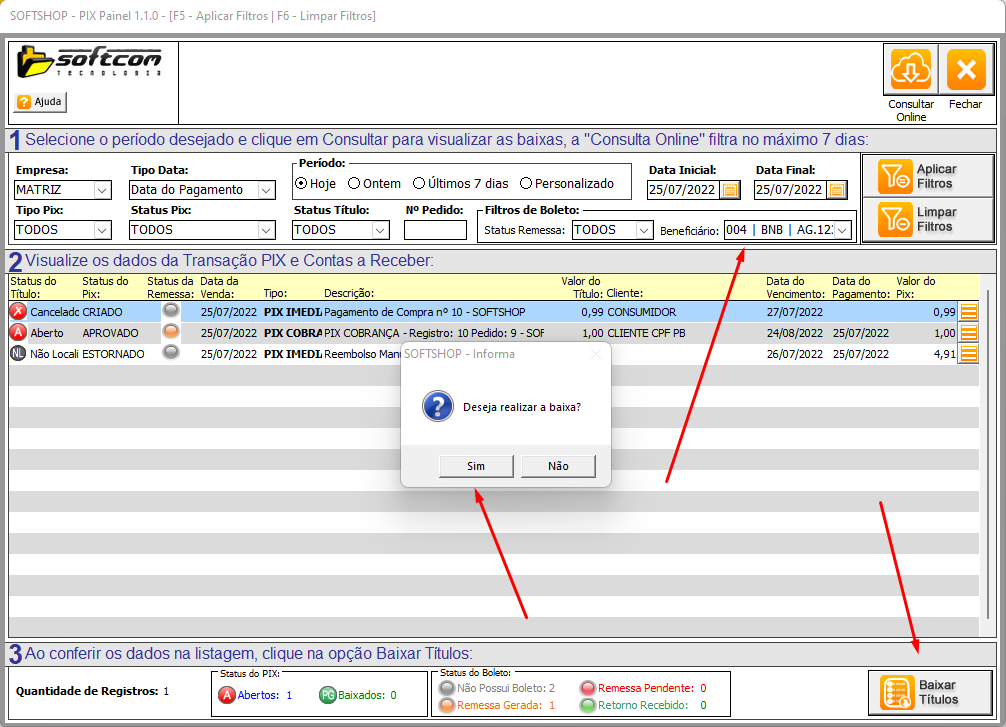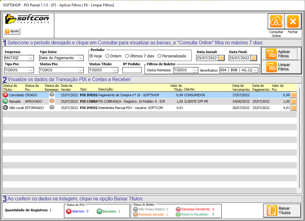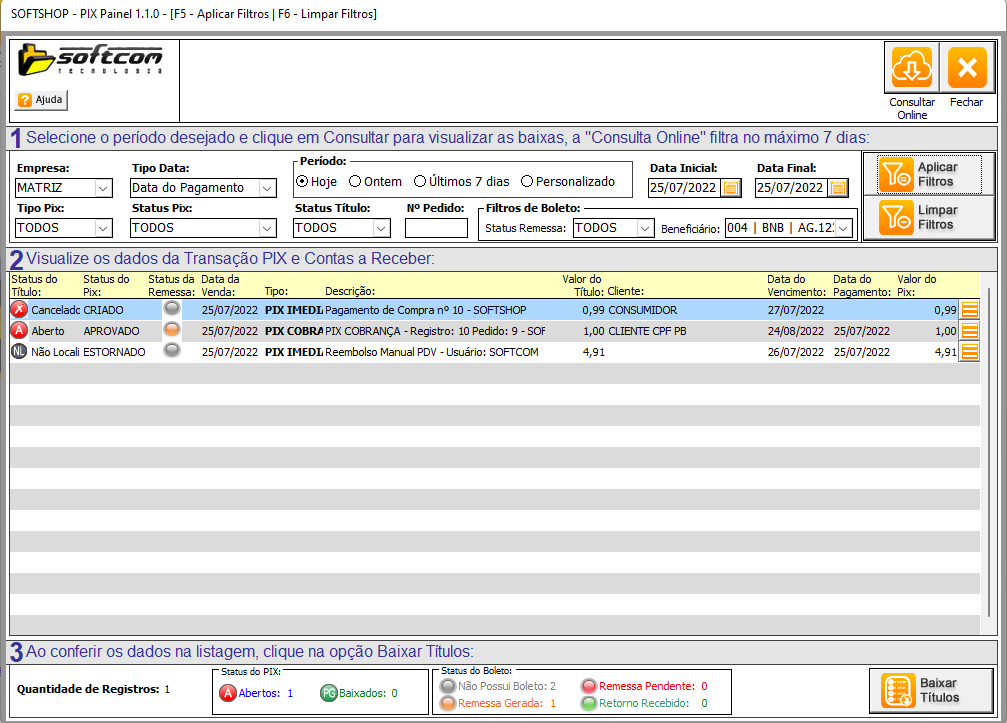 Softshop > PIX: Gerando pedido de Baixa do Boleto Pix.