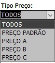 4.2.1.2 - TODOS, permite filtrar pelo código ou descrição da mercadoria, pelo Grupo, pelo Sub grupo, pelo fornecedor e pelo fabricante.