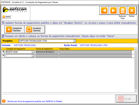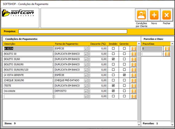 Softshop > Pagamentos: Condições de Pagamentos