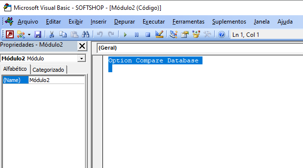 1.3. Ao pressionar CTRL+G ele vai abrir o VBA do Access.