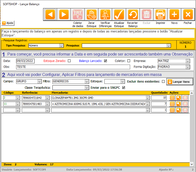 Tags: farmacia, sngpc, inventario, balanco, controlado, antimicrobiano